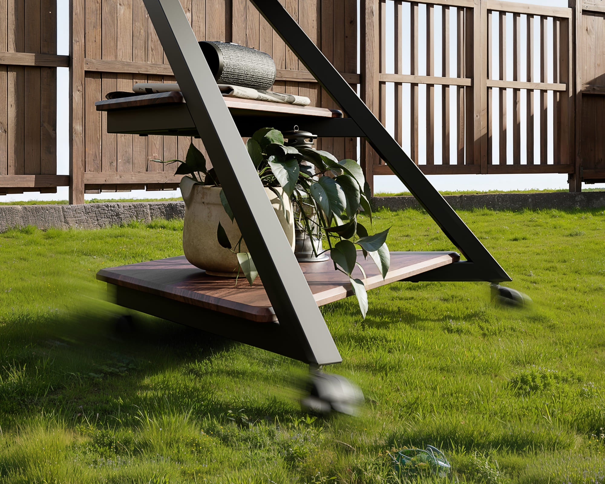 - Movable TV stand with reliable brakes: Glide effortlessly, lock firmly — quick mobility and safe positioning for any outdoor scene.